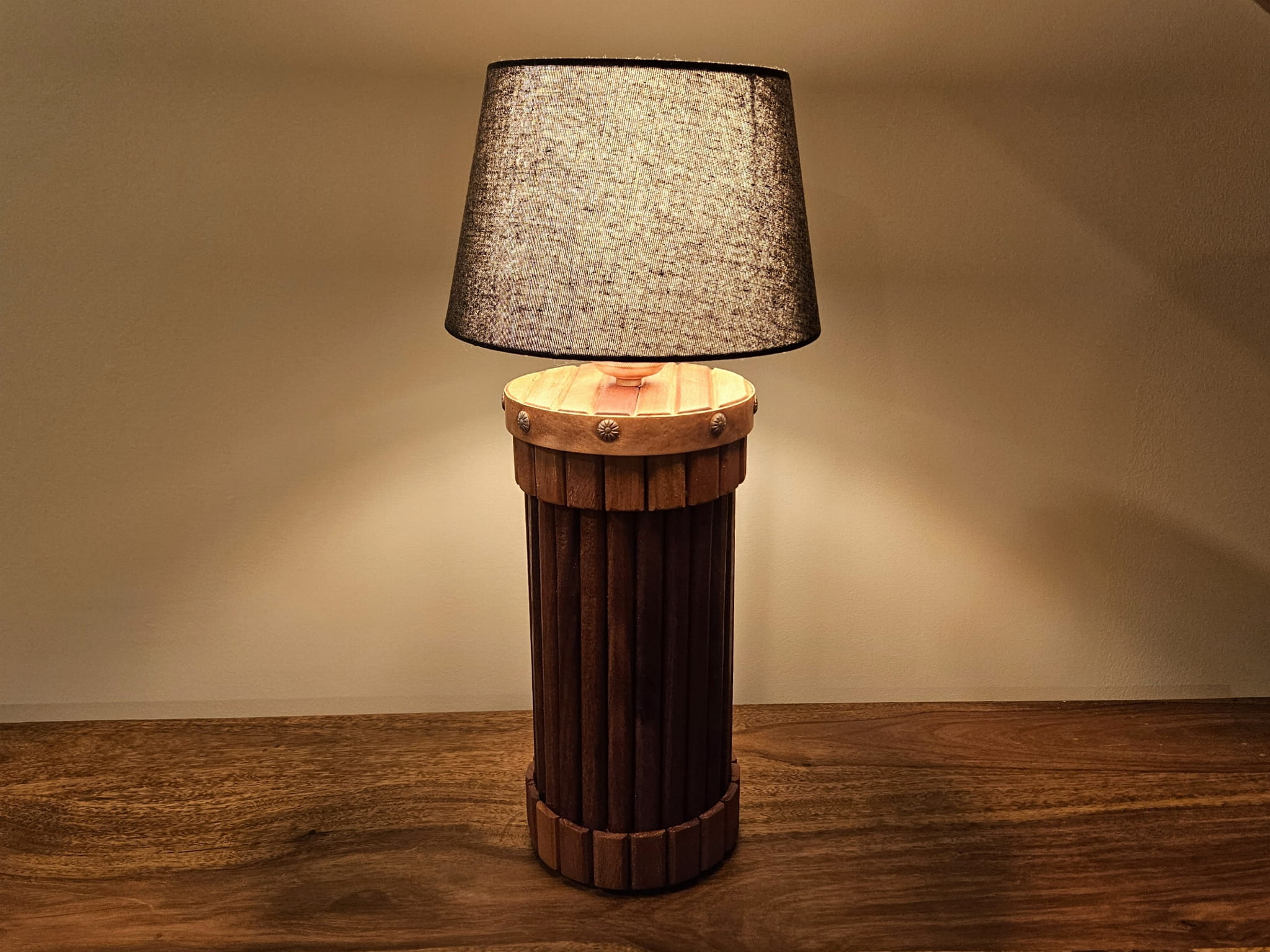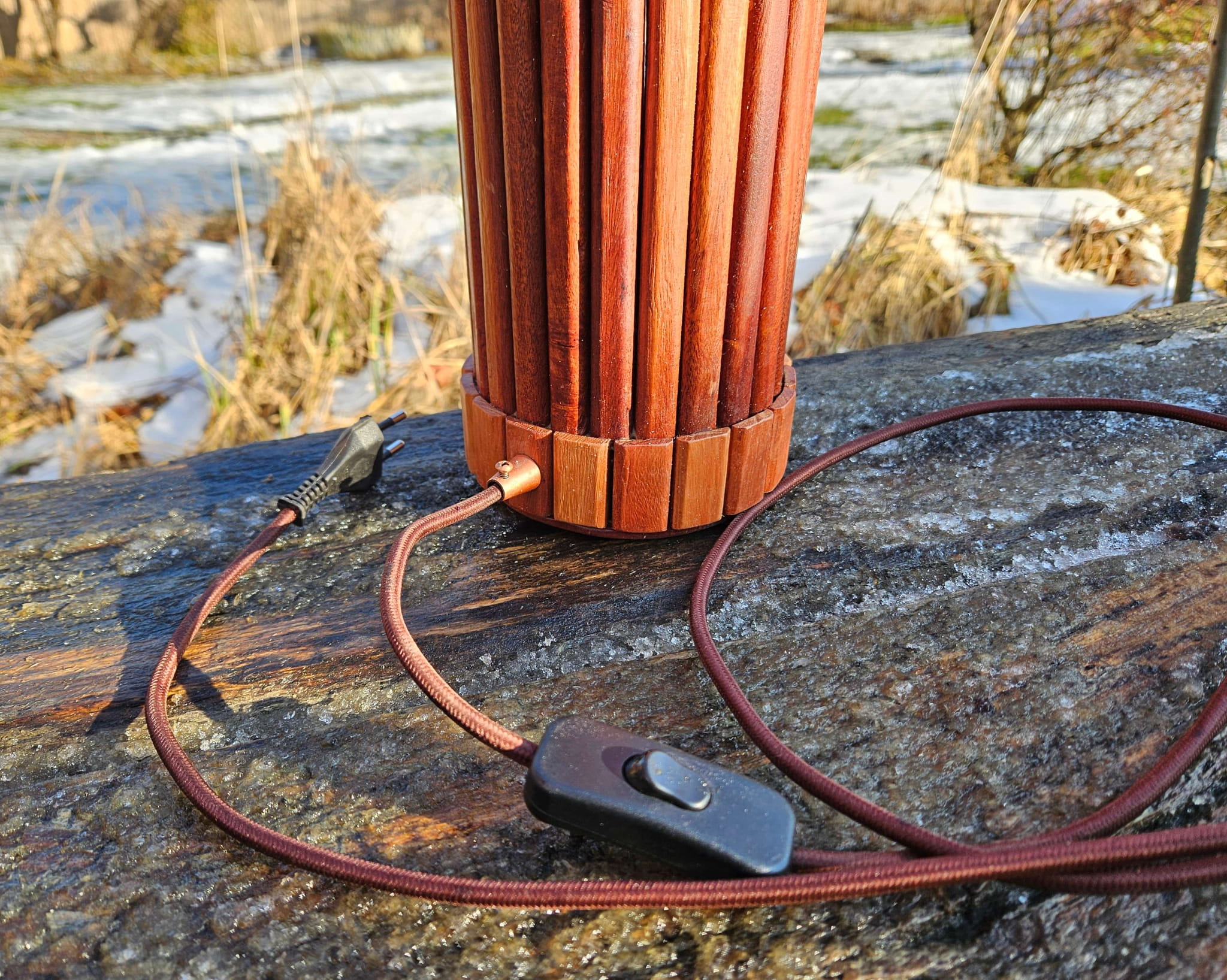 Lampa Miedziana Fantazja - drewno eukaliptus, miedź, rękodzieło, 14x45 cm