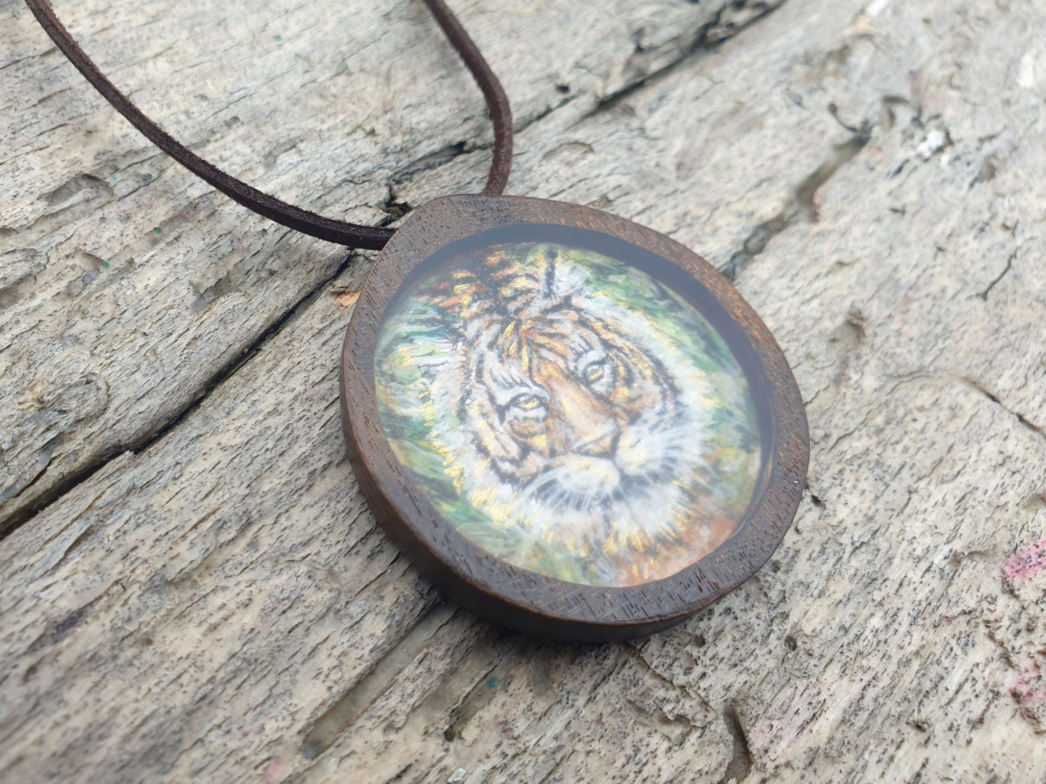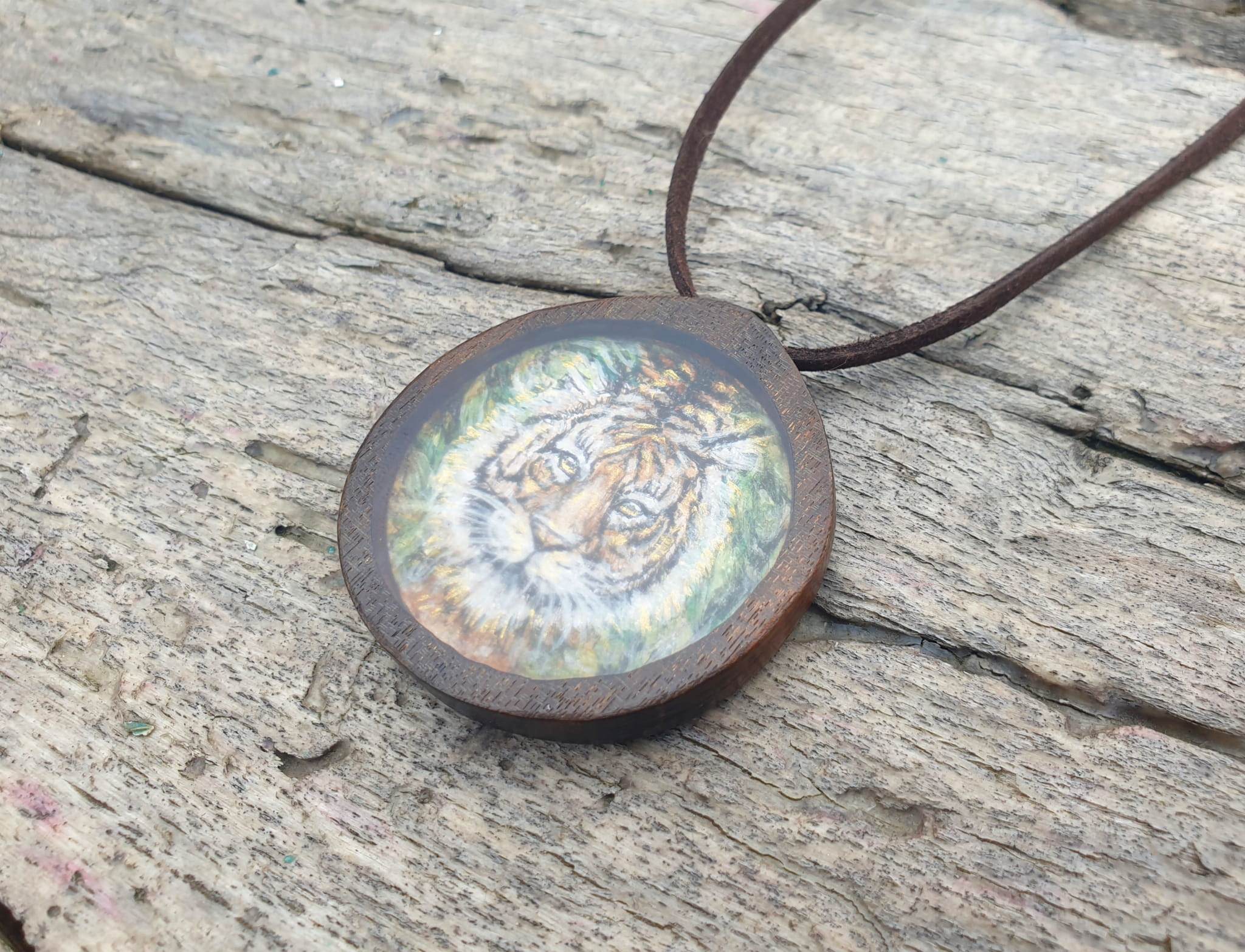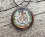Malowniczy Naszyjnik - Magia Tygrysa (obraz, żywica epoksydowa, drewno wenge), rękodzieło, 5 cm