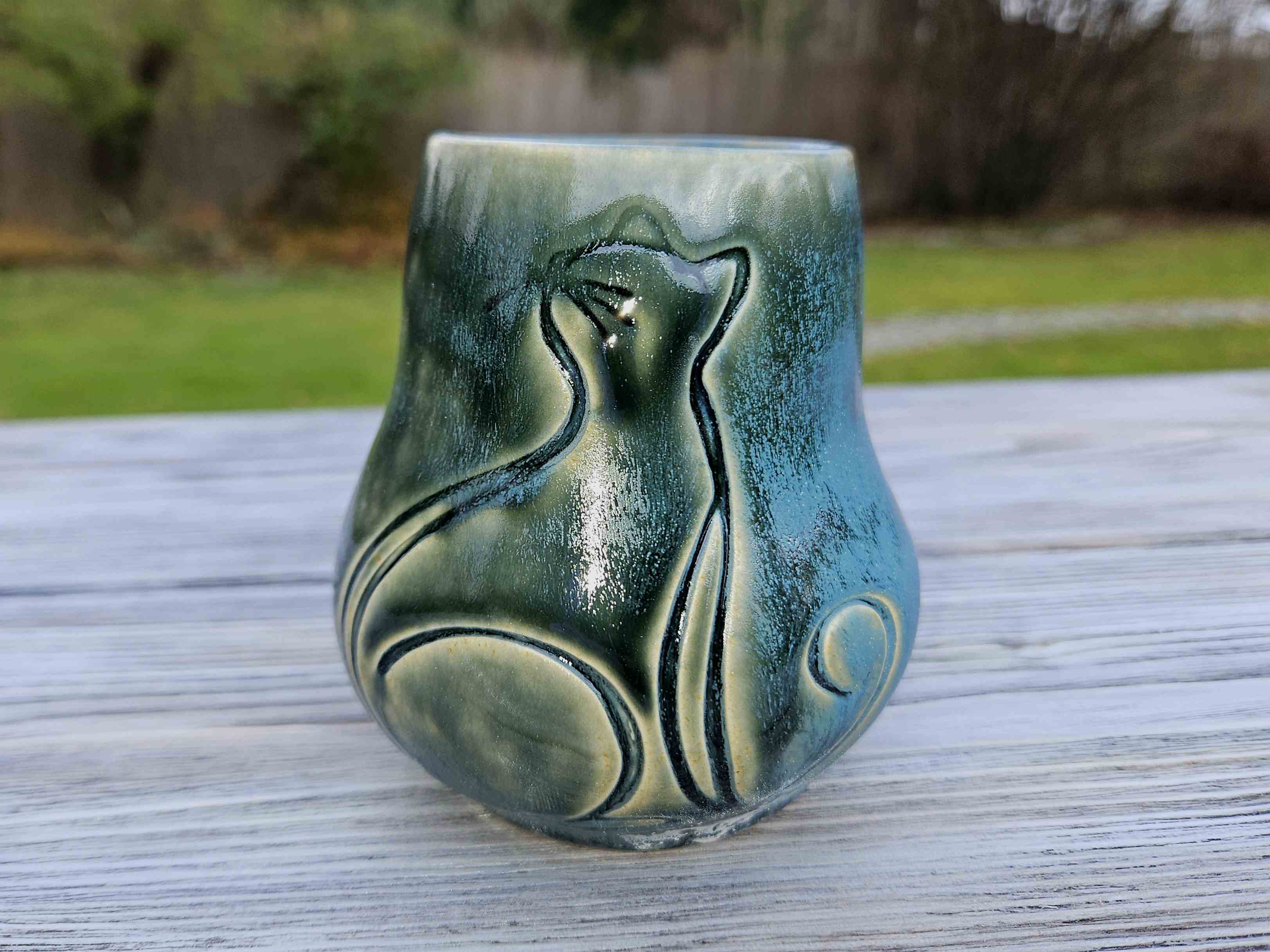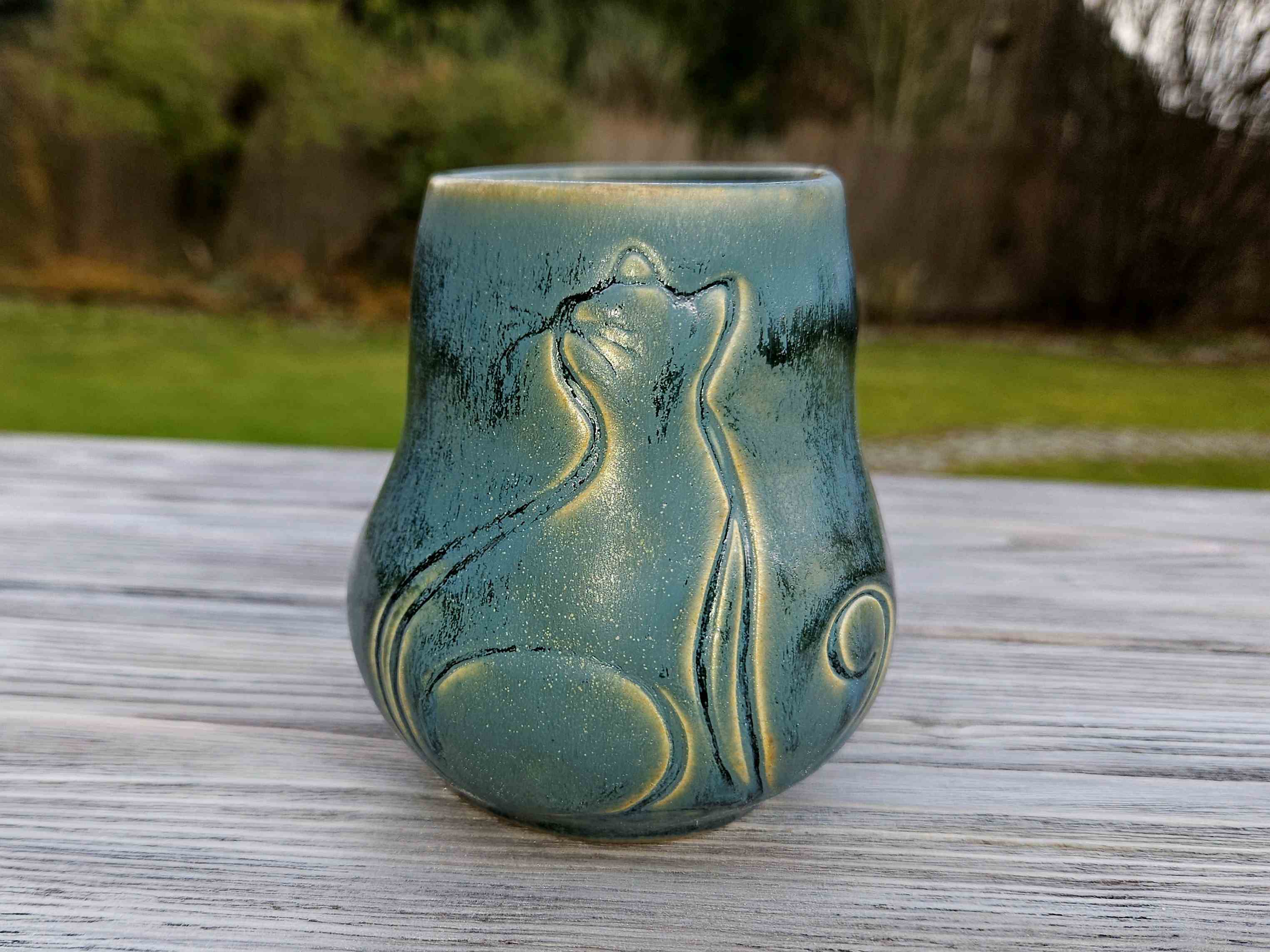Matero to powstało, by umilać chwile z yerba mate, łącząc tradycję z nowoczesną, rękodzielniczą formą. Głębokie odcienie matowego błękitu, pięknie łączą się z motywem magicznego kota i finezyjnym kształtem. Pijąc z tego materka można poczuć połączenie z naturą i jej życiodajną mocą.