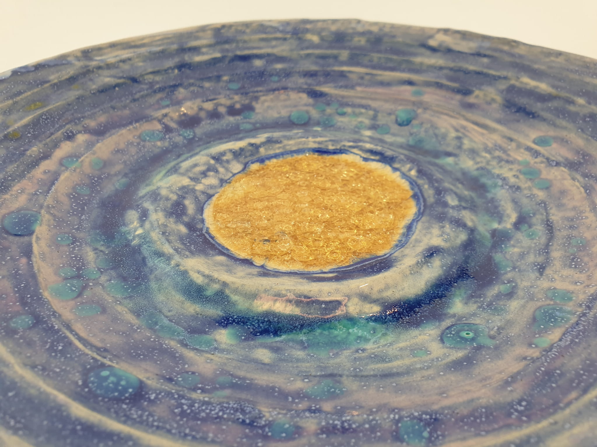 Patera Podwodny Skarb - rękodzieło, 33 cm, niebieski, złoty
